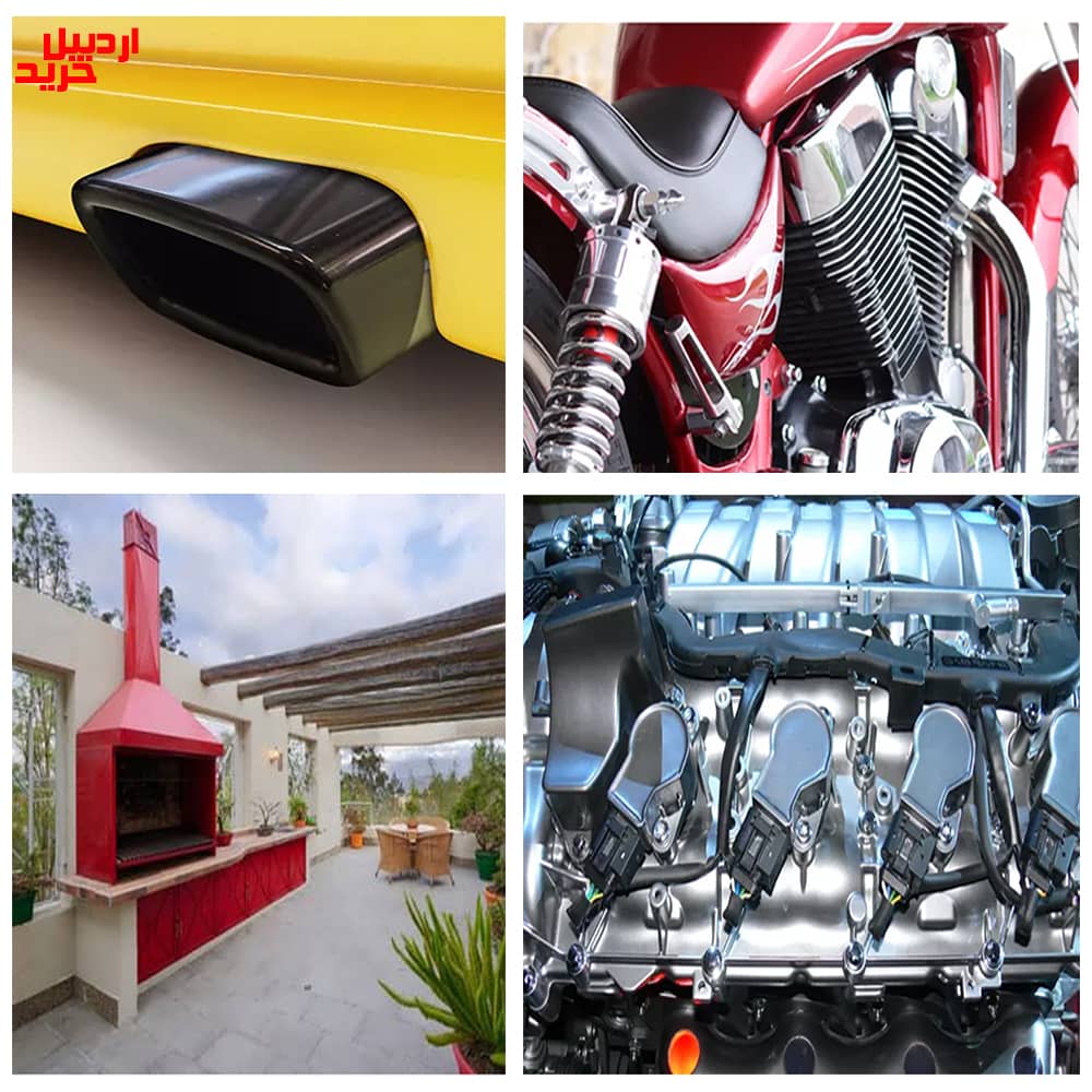 - قابلیت استفاده بر روی قطعات موتور، بدنه صنعتی و تجهیزات حرارتی